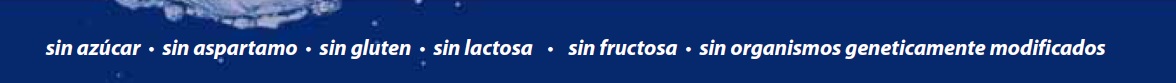 Sin Azúcar • Sin Aspartamo • Sin Gluten • Sin Lactosa • Sin Fructosa • Sin Organismos Geneticamente Modificados