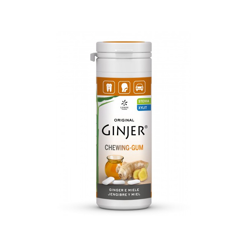 CHICLE sabor a jengibre y miel con edulcorantes.
