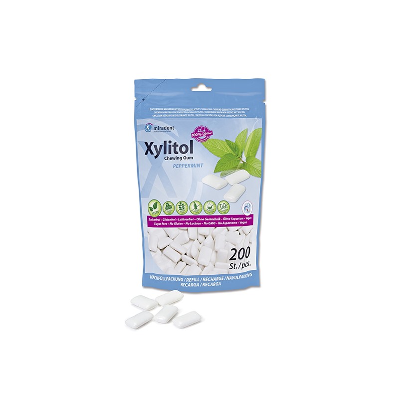Bolsa Chicle Xylitol Miradent sabor Menta 200 uds